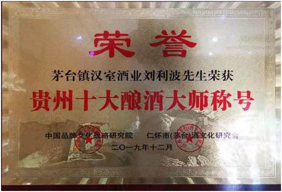 在对高质量酱酒的思考与实践过程中,刘利波先后获得“贵州十大酱酒大师”、“中国酱香酒酿酒大师”等荣誉称号。汉室酒业也获得“中国工匠精神奖”,“中国知名品牌”、贵州省著名商标。